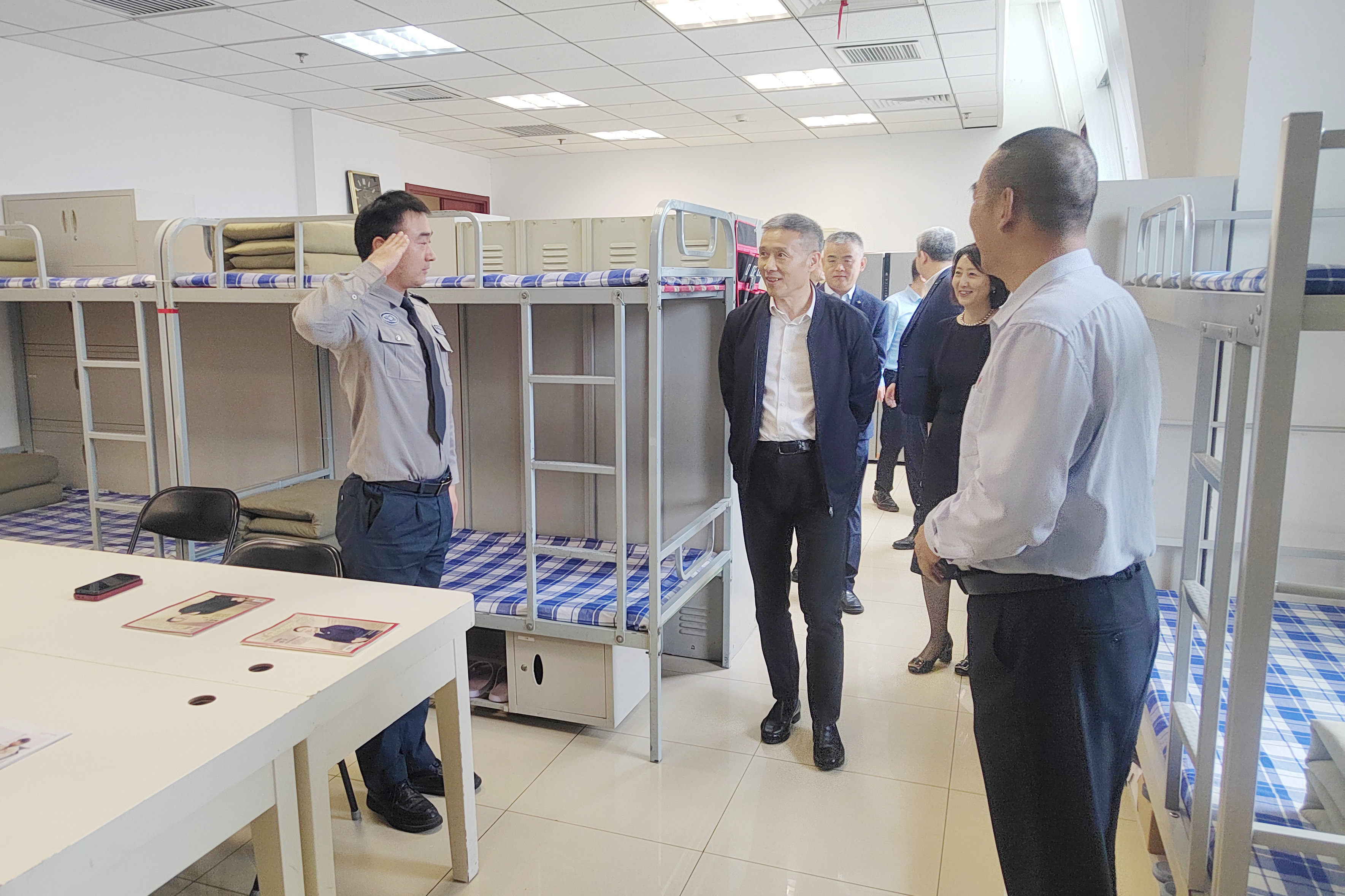 公司党委副书记、董事、总经理李军深入北京市保安服务有限公司通州马驹桥基地和振远护卫第十二支队二基地调研检查,先后查看基地内的安检员宿舍、餐厅及食堂后厨、装备库房、安检员培训场地等,在餐厅内与正在就餐的安检员进行亲切交谈,观摩安检员实操培训,详细了解基地内的部门设置和建设管理情况,并听取工作汇报。