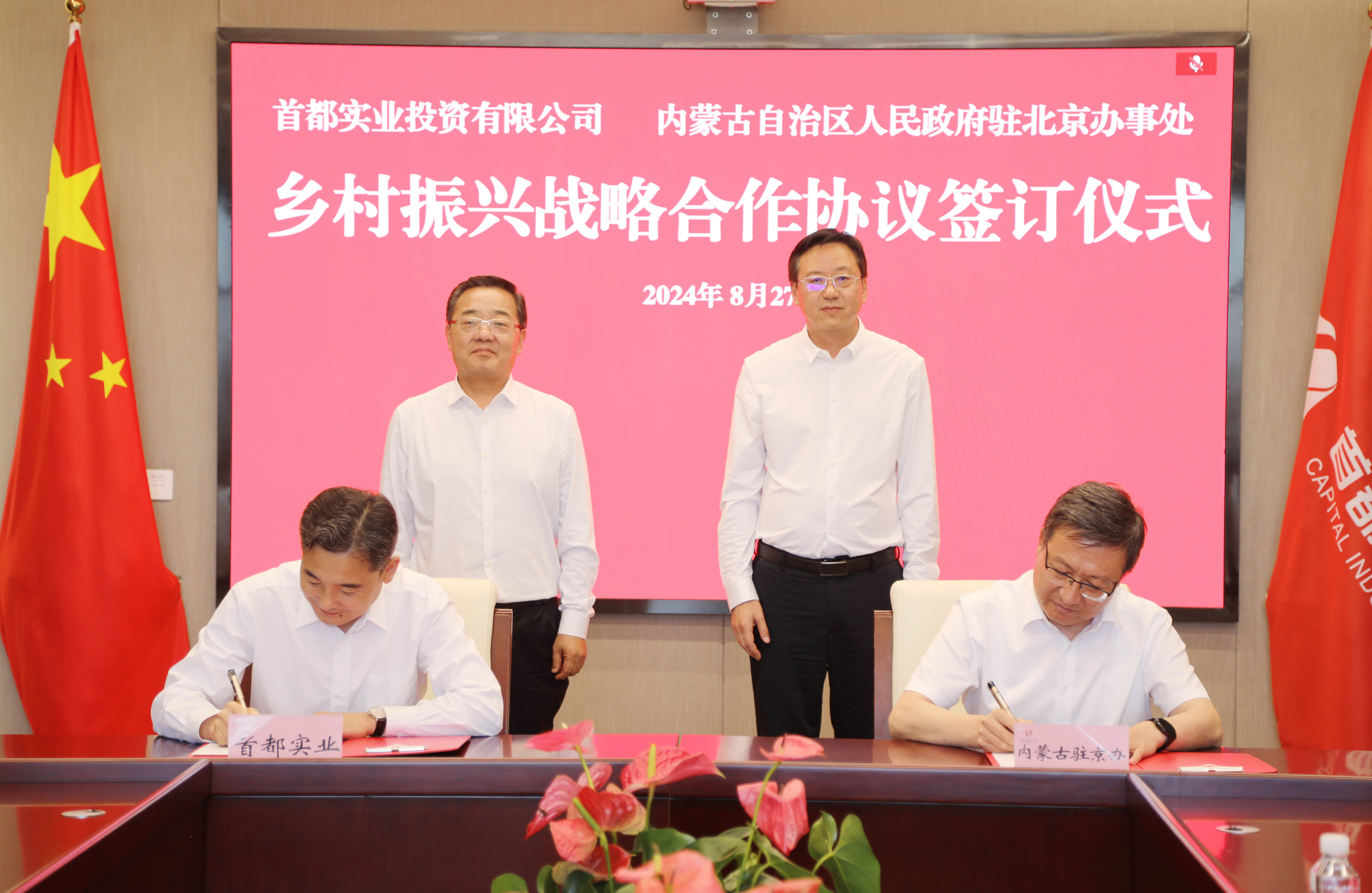 2024年8月27日,绅士漫画 投资有限公司与内蒙古自治区人民政府驻北京办事处签订乡村振兴战略合作协议。绅士漫画 党委副书记、董事、总经理李军,副总经理、工会主席王志奇,内蒙古自治区人民政府驻北京办事处党组书记、主任高建华,党组成员、副主任师建国出席。双方相关部室人员参加。