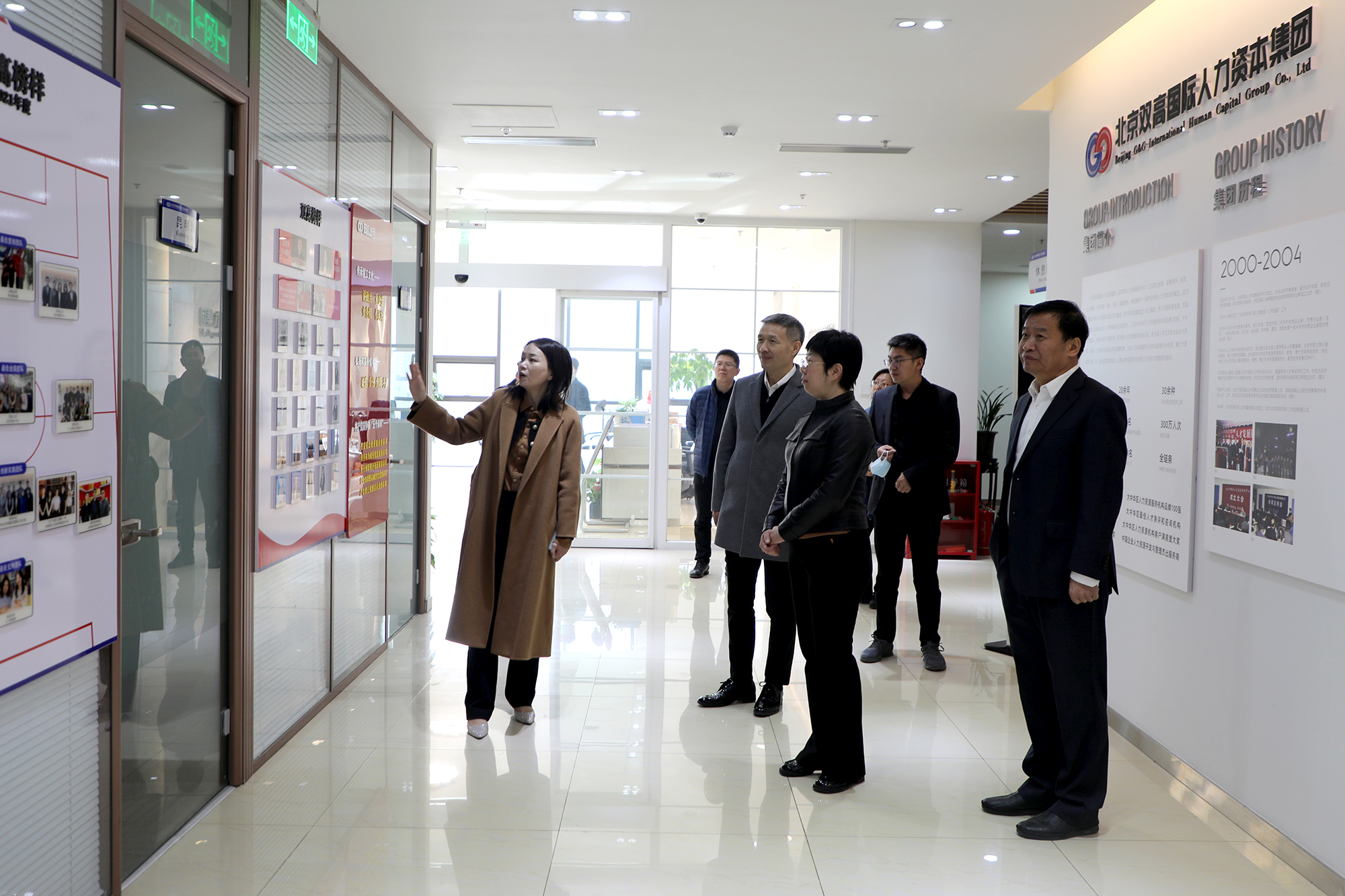晋秋红一行参观了双高集团总部办公区,听取了双高集团企业发展历程、企业经营管理成果、服务首都人才工作实践经验等情况介绍。